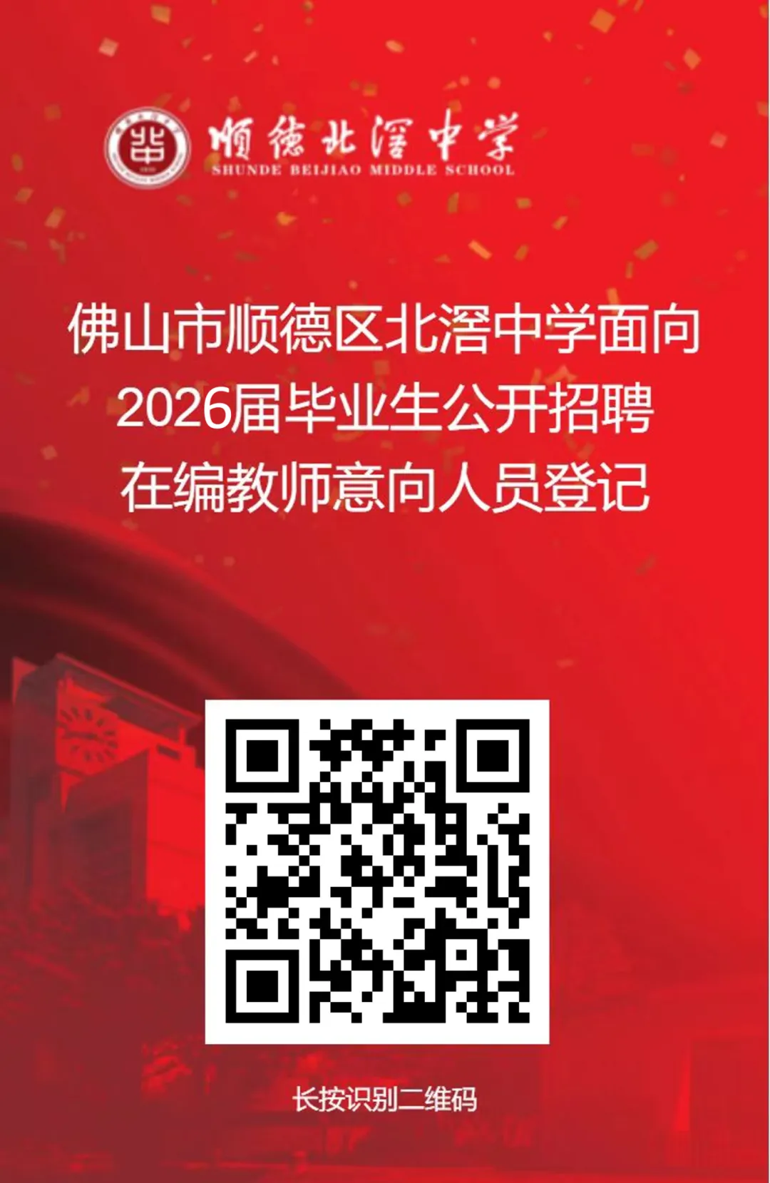 北滘中学面向2026届毕业生公开招聘即将启动!我们诚聘多个学科优秀教师,一旦录用即纳入公办学校事业单位编制。更广阔的舞台为你搭建,更优质的资源为你提供!