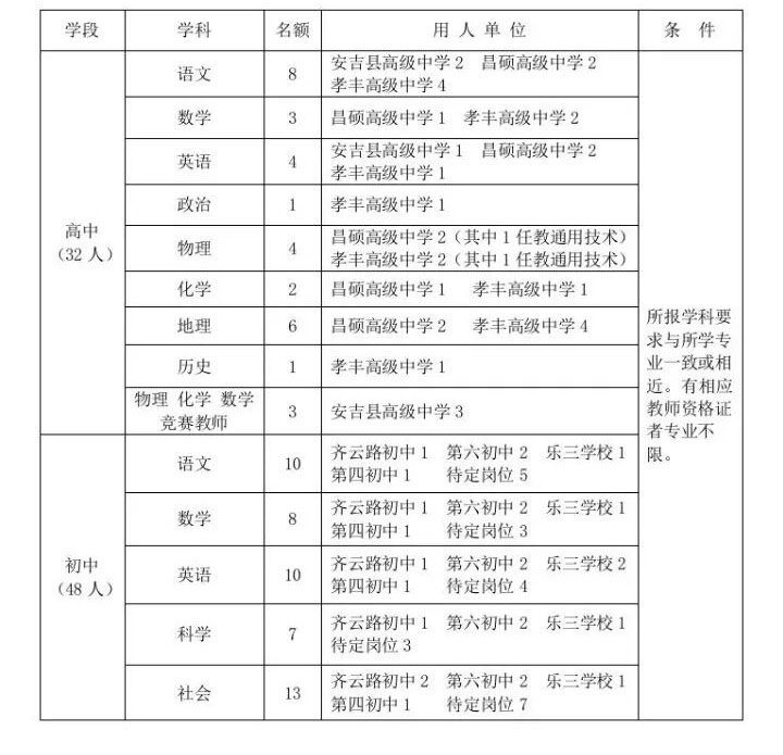 招聘名额及专业要求见附件
